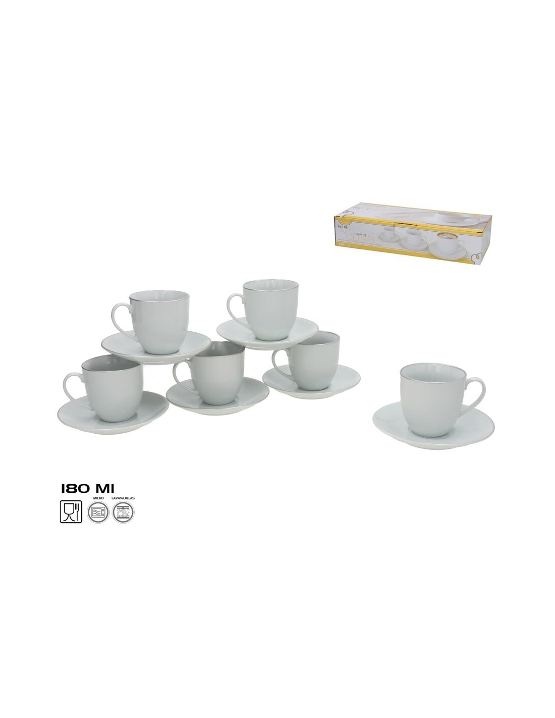 SET 6 TAZAS/PLATO OLIMPI FILO PLATA 180CC