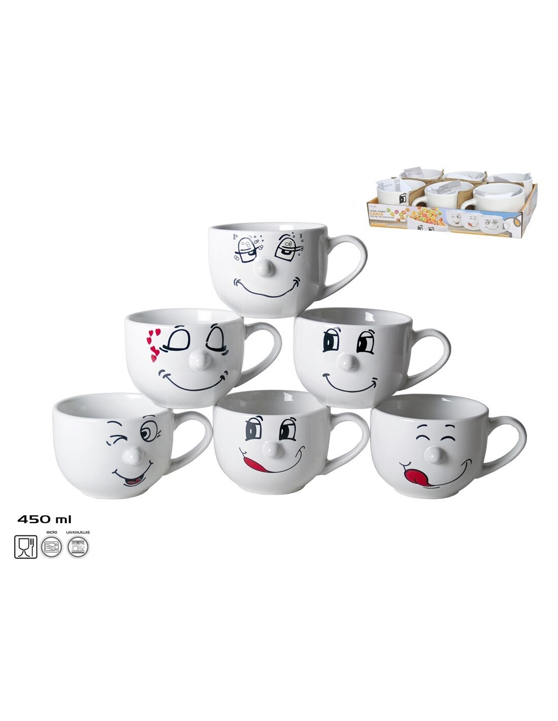 TAZA 450ML JUMBO CARAS SURT. CERAMICA