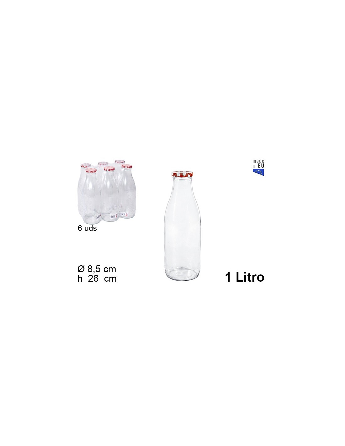 BOTELLA CRISTAL LECHE ZUMO O AGUA 1L
