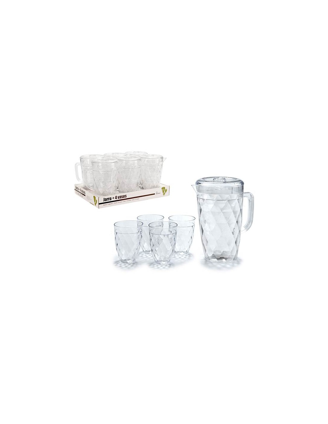 JARRA 1,5L + 4 VASOS PLASTICO TRANSPAR