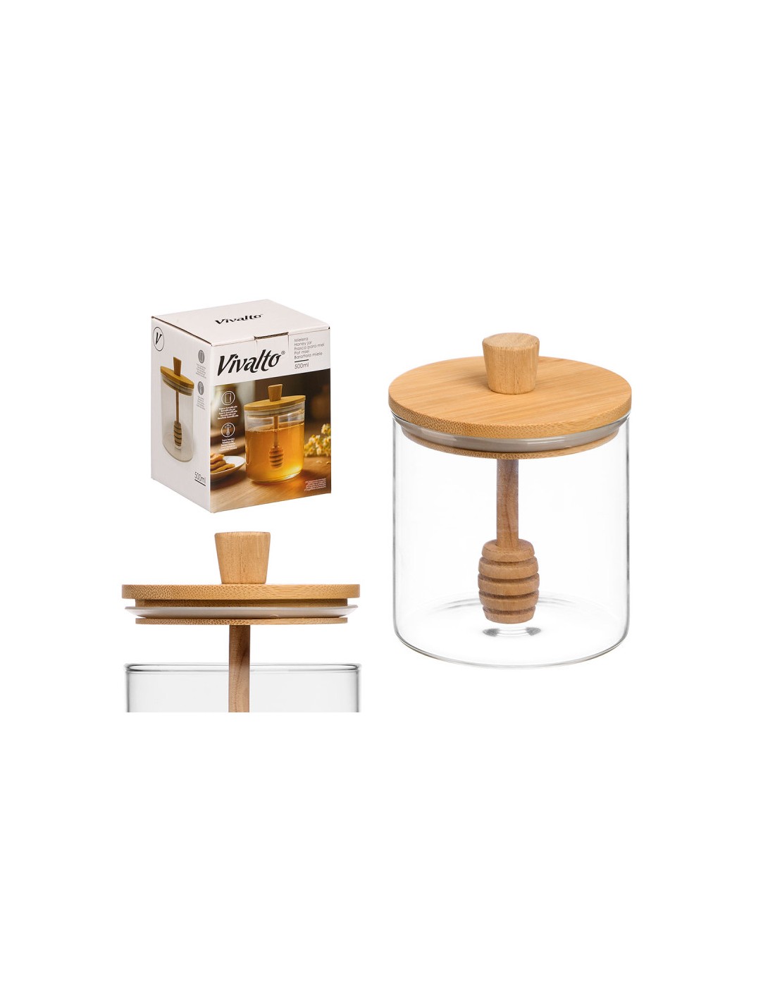 MIELERA BOROSILICATO MANGO TAPA BAMBU 500ML