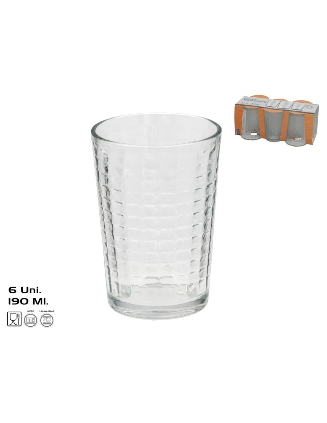 SET 6 VASOS ESQUARE 190 ML