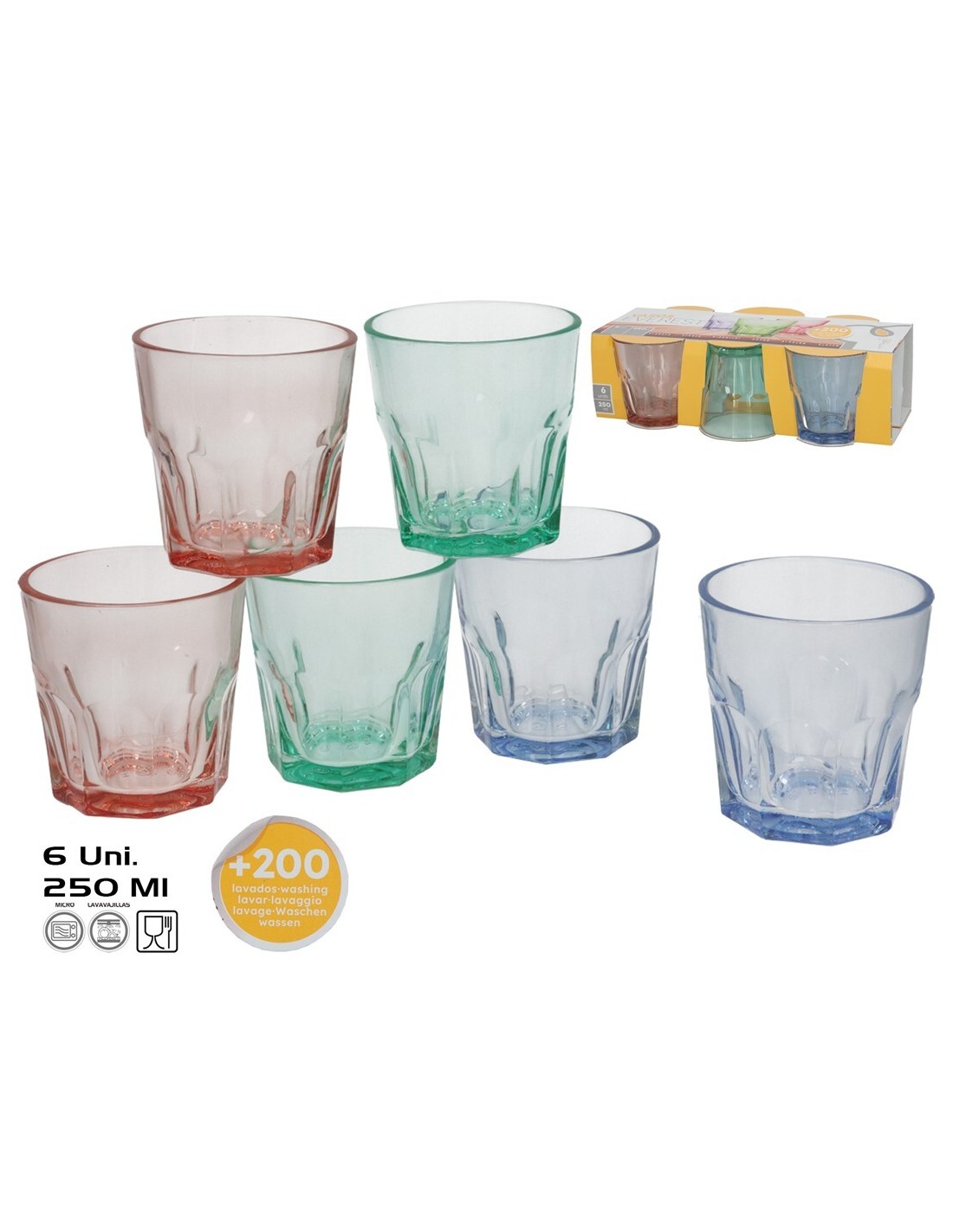 SET 6 VASOS EVEREST 250 ML COLOR