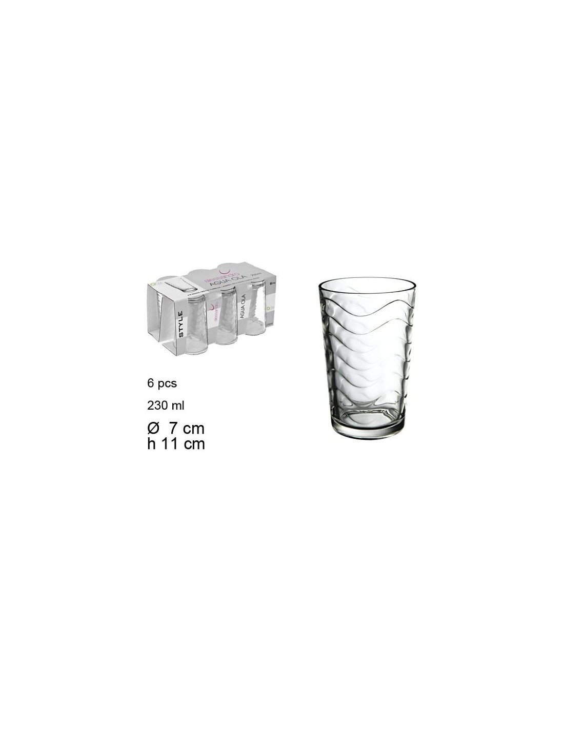 VASO 230ML 11CM 6UND CRISTAL AGUA OLAS