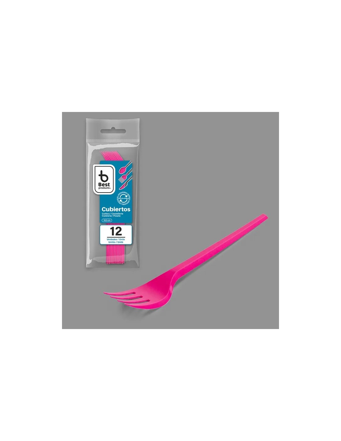 S/12 TENEDOR REUTILIZABLE ROSA 16,5 CM