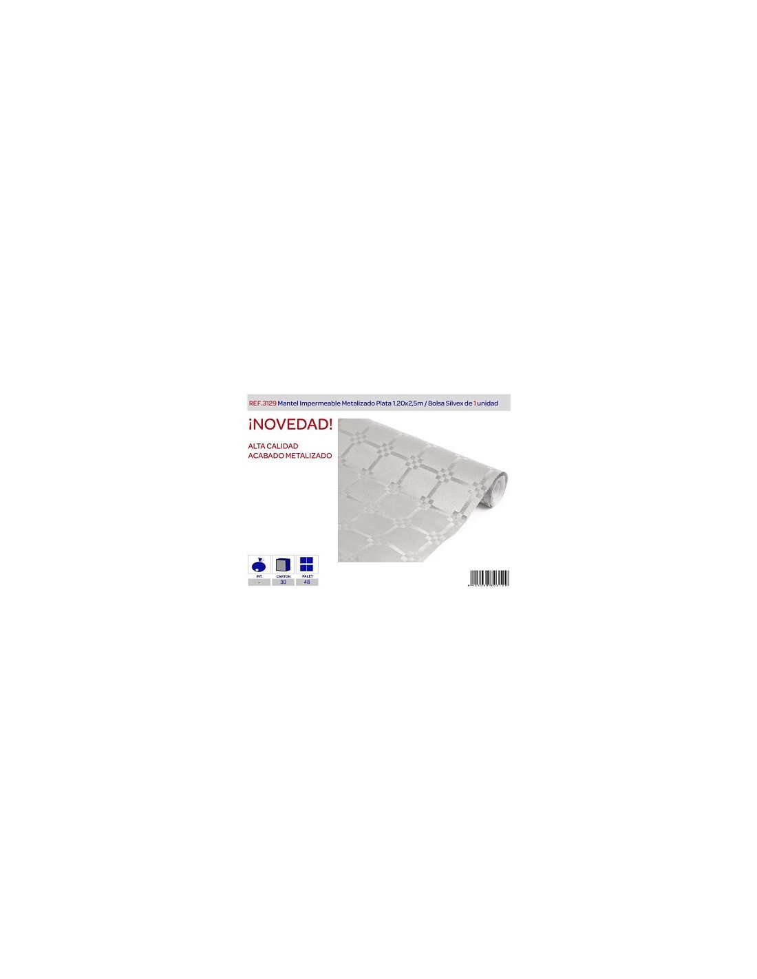 MANTEL IMPERMEABLE PLATA METALIZADO 1,20 X2,5M L.1