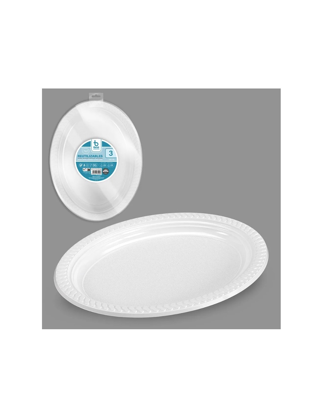 S/3 PLATO BLANCO OVAL REUTILIZABLE 30 X 23 CM
