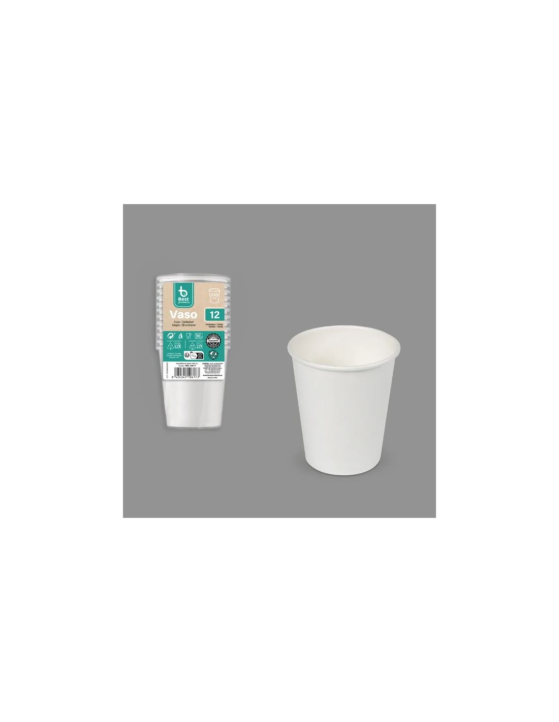 S/12 VASO CARTÓN BLANCO 330 CC