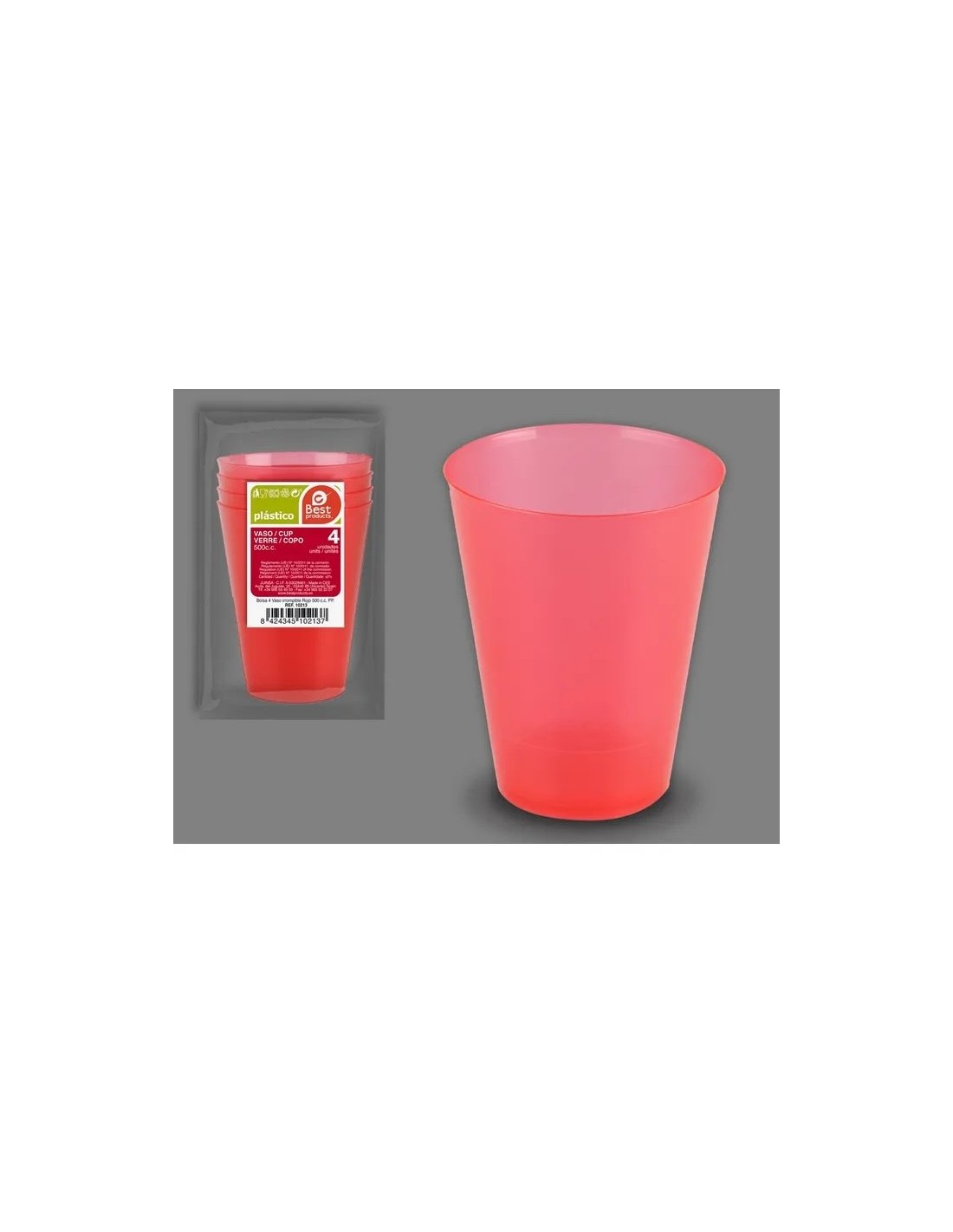 S/4 VASO 500CC IRROMPIBLE ROJO REUT