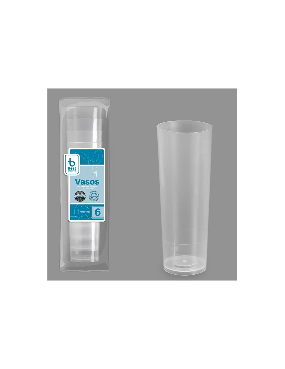 S/6 VASO TUBO 300CC TRANSP REUTILIZABLE