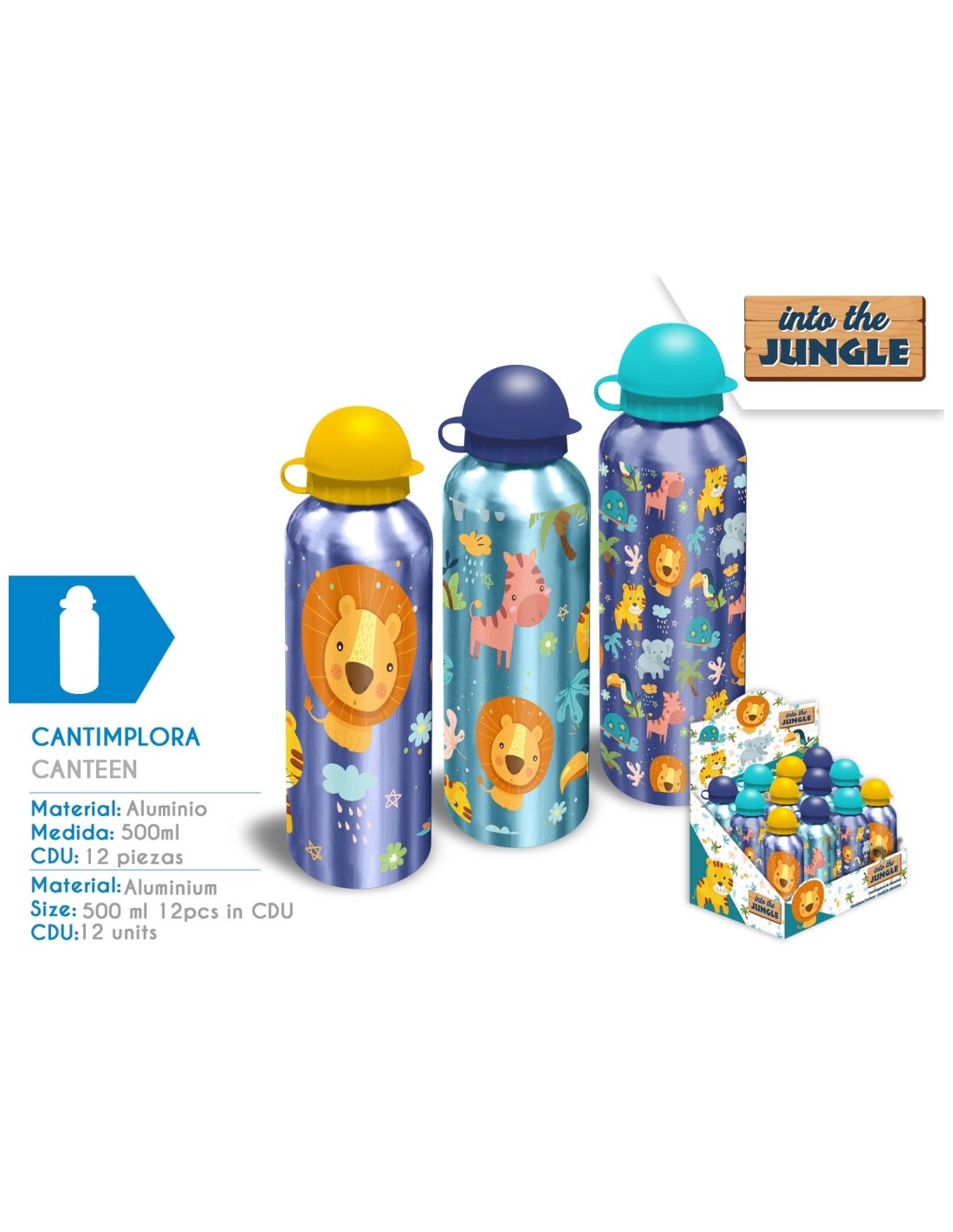 CANTIMPLORA ALUMINIO 500ML SURTIDO 3 DISEÑOS INTO THE JUNGLE