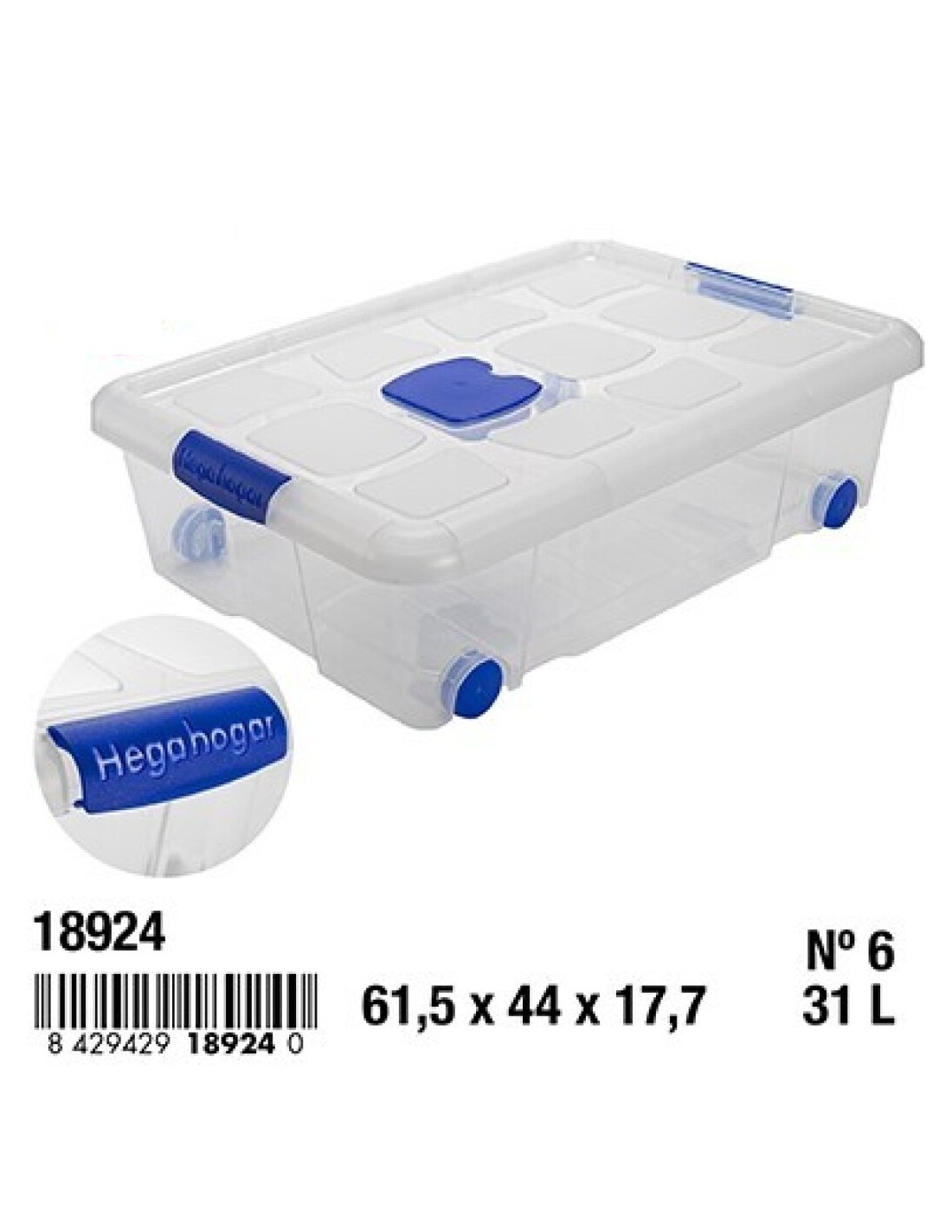 CAJA 31L 61.5X44X17.7CM Nº6 CIERRES ANTIPOLILLA Y RUEDAS