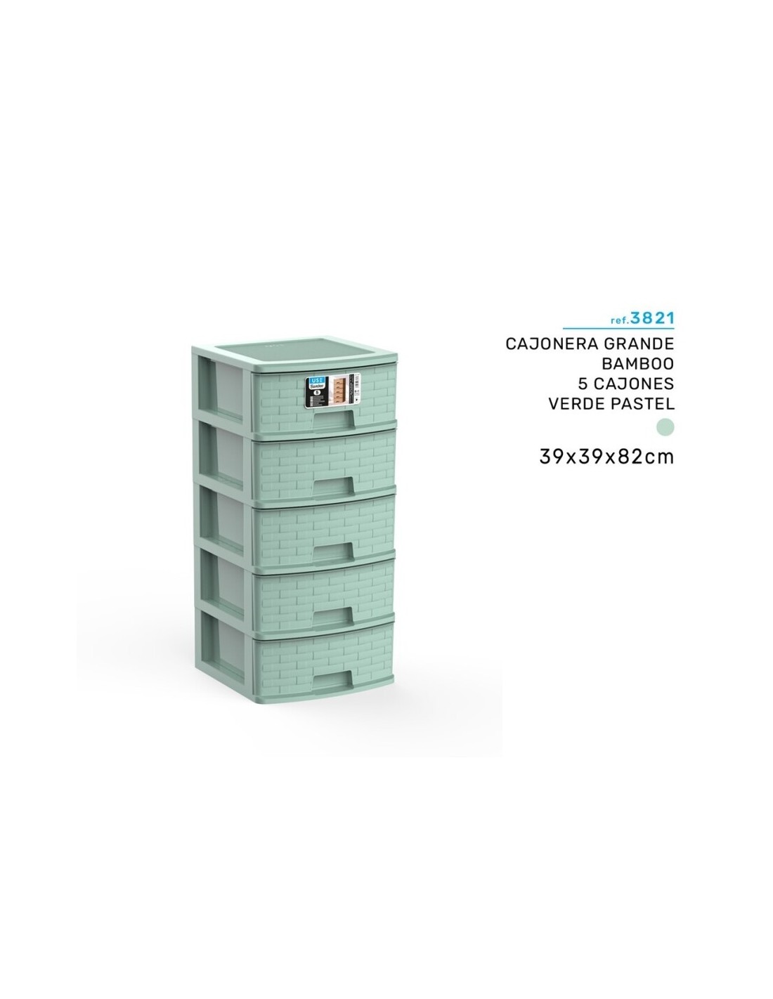 CAJONERA 39X39X82CM 5 CAJONES VERDE PASTEL