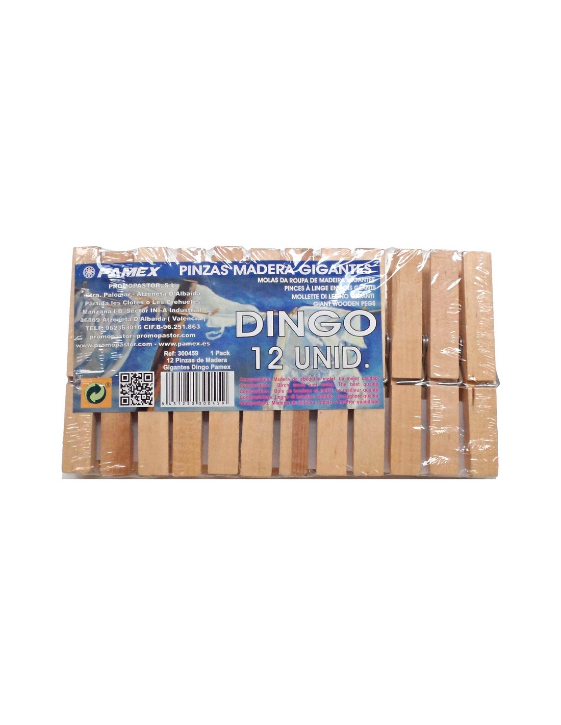 PINZA DE MADERA GIGANTE DINGO 12 UNI.