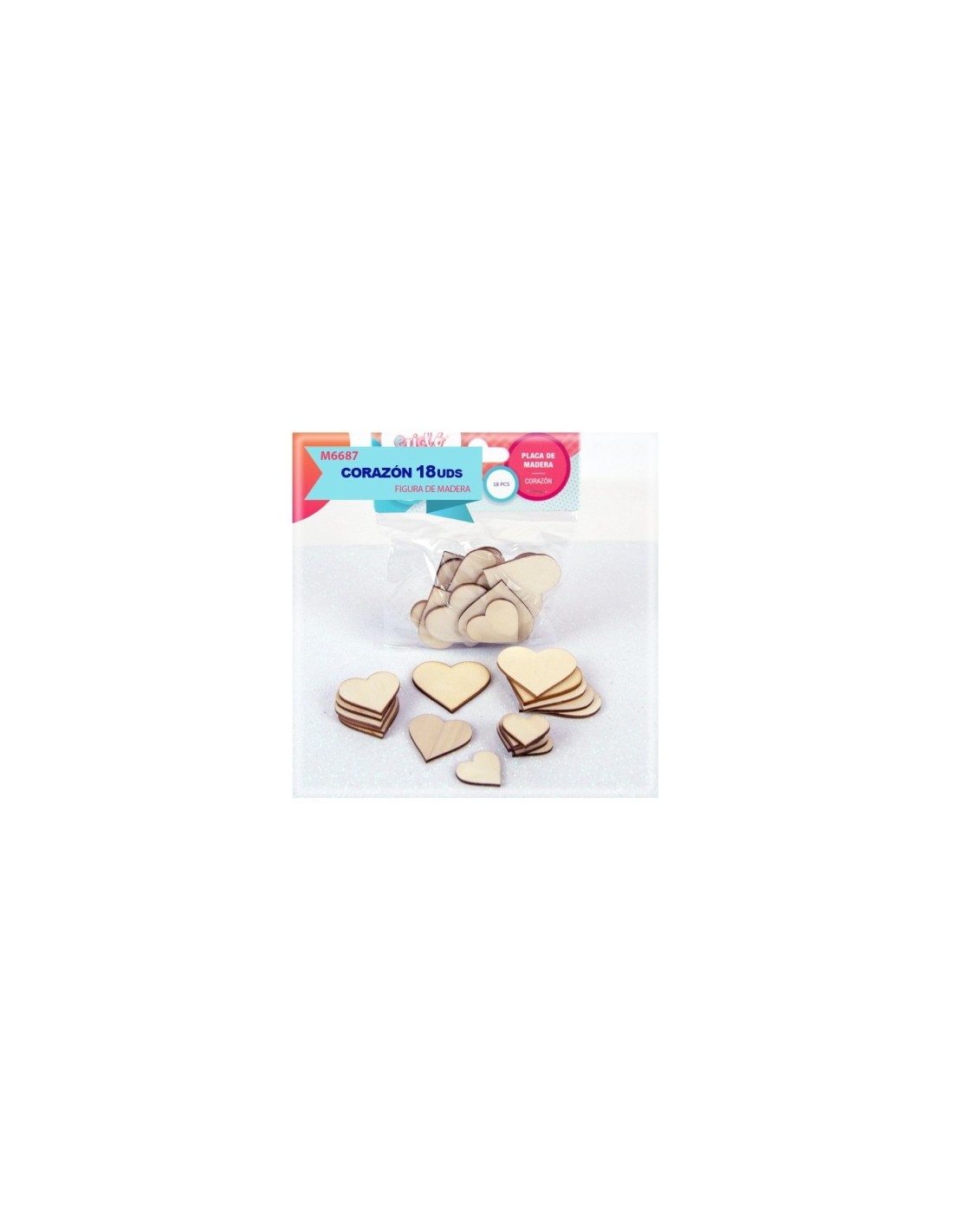 PLACA DE MADERA CORAZON 18PCS