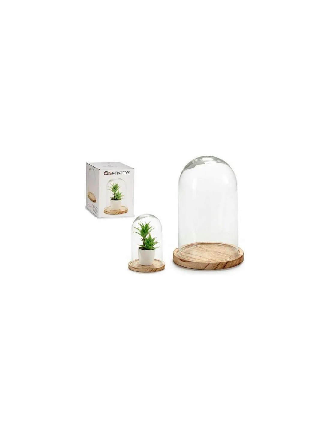 CUPULA CRISTAL BASE MADERA DIAM 22,5CM