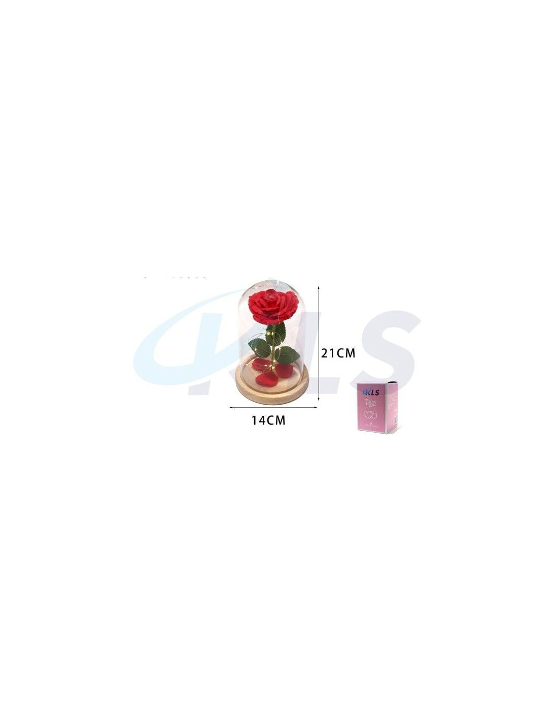 CÚPULA DE CRISTAL CON ROSA DECORATIVA-ROJO